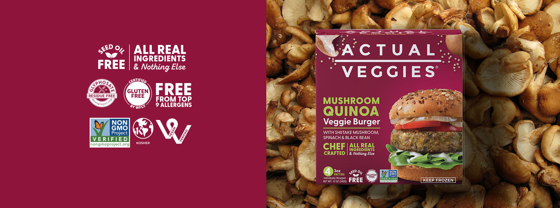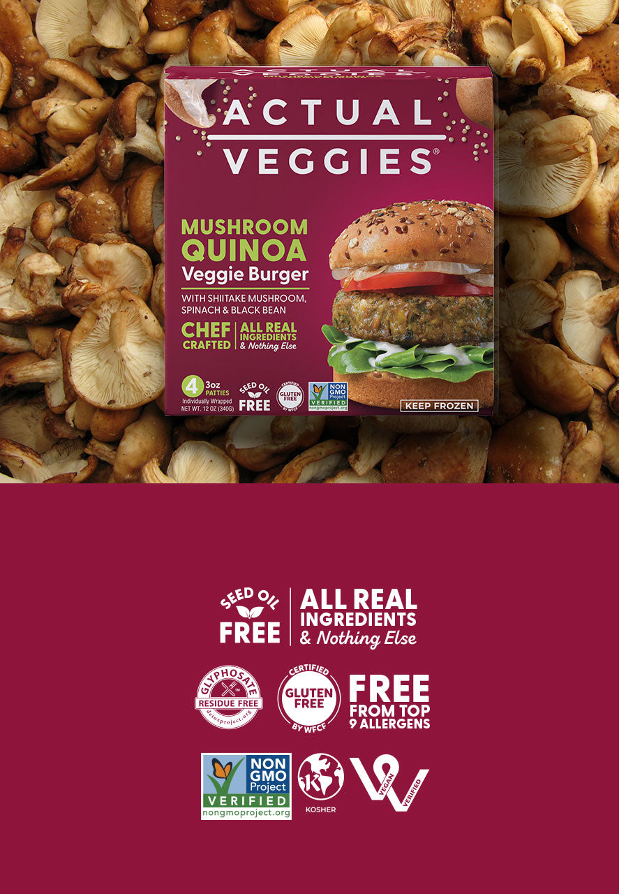 Chef Crafted Mushroom Quinoa Burgers with Shiitake Mushroom, Spinach and Black Bean