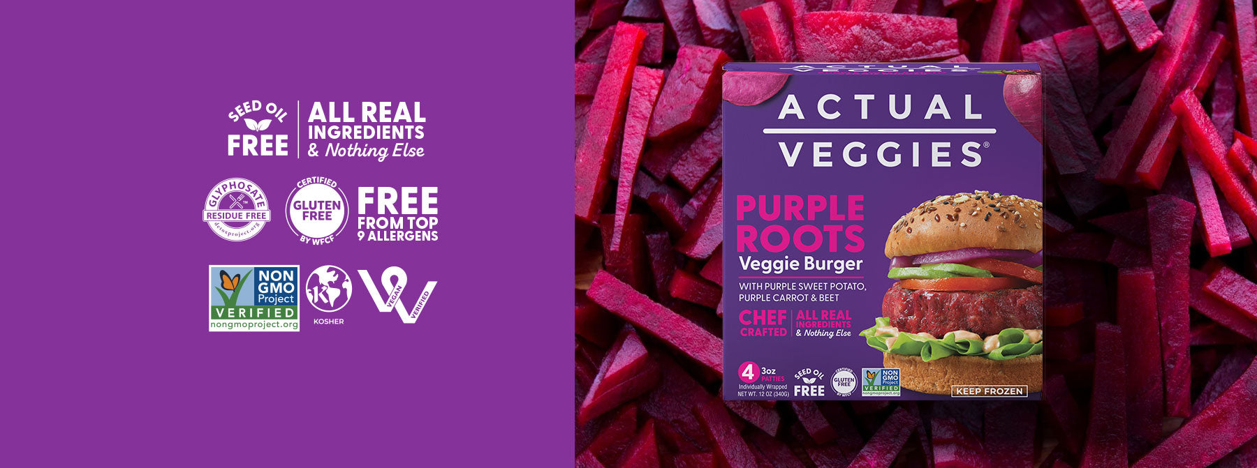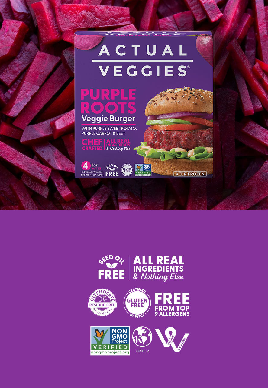 Chef Crafted Purple Roots Burgers with Purple Sweet Potato, Purple Carrot and Beet